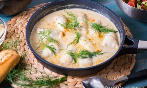 Lägg upp fisken med den krämiga såsen och servera med smörslungad potatis, ris eller färska grönsaker. Toppa med färsk dill.