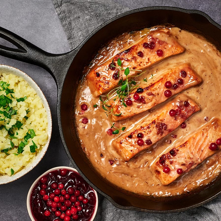 Den lena laxen, den syrliga lingonen och den runda viltsåsen skapar en perfekt harmoni av höstsmaker. En rätt som värmer, imponerar och ger känslan av riktig hemlagad lyx.